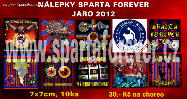 Před novou sezónou opět po roce budou k dostání nové série nálepek Sparta Forever a Ultras Sparta. Návrhy na nálepky jste si vytvořili vy, fanoušci Sparty a tak je snad zaručeno, že se vám budou líbit. Nejlepší autoři již byli odměněni šálami Homolka Boys a dalšími sparťanskými suvenýry, vy všichni se pak díky nim můžete těšit práve na nové série čítající vždy 10 motivů v klasickém rozměru 7,5 x 7,5 cm. Jeden balíček vyjde na tradičních 30,- Kč, přičemž věříme, že se právě díky oblíbeným nálepkám podaří opět realizovat nějaká pěkná chorea. Co se týká tématiky, tak celých 16 motivů z 20 je PROSPARŤANSKÝCH a jen 4 motivy jsou "ANTI" a tak se snad zavděčíme i těm, kdo věčně kritizují ty škládlivější návrhy proti slavii, baníku atd., kterých nám v návrzích chodí nejvíce.
