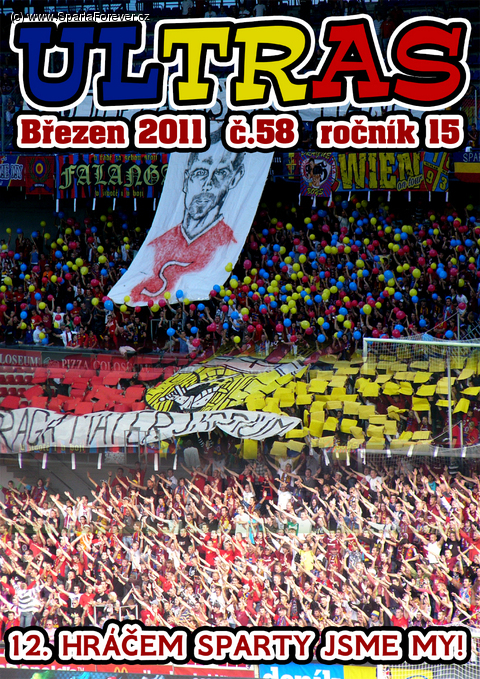 Již od víkendového utkání Sparty s Brnem bude na všech tradičních místech k dostání nové číslo, tentokráte již 58. populárního zinu sparťanských fanoušků - ULTRASu. Jeho obsah mapuje uplynulé měsíce, ve kterých Sparta sehrála řadu úspěšných zápasů, ale i některé smolné prohry. Ve fanouškém prostředí se jednalo o poměrně klidné období, ale ne tak, aby nebylo o čem psát. Všechny články jsou pochopitelně originální psané na míru ULTRASu a tak se nestane, že by jste nějaký text snad už četli někde na netu nebo třeba na těchto stránkách. Tradičně je věnován prostor pravidelným rubrikám a jedná se o celobarevné provedení na kvalitním papíře. Jak bylo již řečeno, zin bude k dostání u tradičních prodejců, tzn. v kotli Sparty, před stadionem při příchodu na Letnou, v obchodě STYLSPORT (Havanská 12, Praha 7) a na stánku E-shopu 1893, který je umístěn na ochozu podlouhlé tribuny naproti hlavní. Cena byla udržena na 70,- Kč, takže za víc ULTRAS nikde nekupujte:) XII. HRÁČEM SPARTY JSME MY!