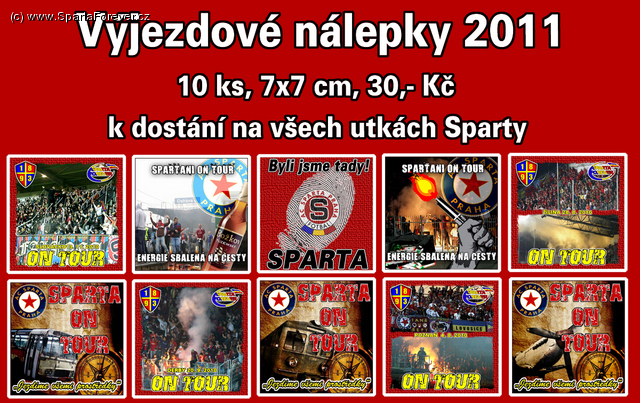 Blíží se výjezd jara na Liverpool a samozřejmě i mnoho zajímavých výjezdů v lize, hned ten první do Ostravy atd. a proto přicházíme s novou sérií nálepek. Tato VÝJEZDOVÁ SÉRIE čítá 10 motivů a k dostání bude už od dnešního zápasu s Liverpoolem, proto nezapomeňte navštívit obchod STYLSPORT cestou na stadion v Havanské ulici na Praze 7, kde budou nálepky k mání až do vyprodání, případný dorpodej bude probíhat tradičně v okolí stadionu nebo přímo na něm. Cena je tradičních 30 korun a jedná se o větší, lépe viditelný, rozměr nálepek. Věříme, že se vám nové motivy budou líbit, sbalíte si energii na cesty a vyrazíte všemi prostředky vstříc zajímavým zážitkům se Spartičkou. Je třeba ozdobit všechny stadiony a cizí města těmito sparťanskými VÝJEZDOVÝMI NÁLEPKAMI! SPARTA FOREVER!