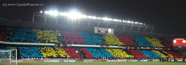 Máme pro vás dobrou zprávu vztahující se k choreoaktivitám na Letné. Na domácí zápas s Liverpoolem se podařilo vyjednat povolení chorea a tak po nesmyslných represích ze strany Sparty a UEFA v minulých kolech evropských pohárů se tak i po této stránce budeme moci alespoň trochu důstojně prezentovat na mezinárodní scéně. Protože se snad očekává vyprodaný dům, rozhodli jsme se realizovat celostadionové choreo, a to rovnou z krásných lesklých kartonů, které byly celé objednány z přeplatku autobusů 12.HRÁČE do Liverpoolu. Každý kdo cestuje tedy s 12.HRÁČEM do Liverpoolu autobusem, může být spokojen, že z jeho financí snad bude další celostadionové choreo realizováno. Všechny podrobnosti ohledně roznášení chorea - a že bude potřeba hodně ochotných dobrovolníků! - se zde na webu včas dozvíte. Z normálních papírů plánujeme celostadionové choreo i na derby, tak se snad na jaře je na co těšit..