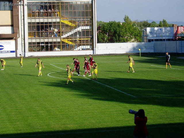 Pohárový zápas se odehrával ve sportovním areálu, které sice obsahuje slušně vyhlížející fotbalové hřiště, ale mnohem častěji sem lidé v hojném počtu zavítají do hokejové haly Ivana Hlinky. Jelikož jsme dorazili přibližně půl hodiny před výkopem, měli jsme dostatek času k prohlédnutí veškerého občerstvovacího sortimentu, který zdejší stadión nabízel. Mimo tradičních (a výborných) paprikových klobásek jsme mohli ochutnat i grilovaná masíčka, fajnšmekři na sedačkách okusovali kukuřičné klasy nebo si pochutnávali na pěkně vonících špízech.