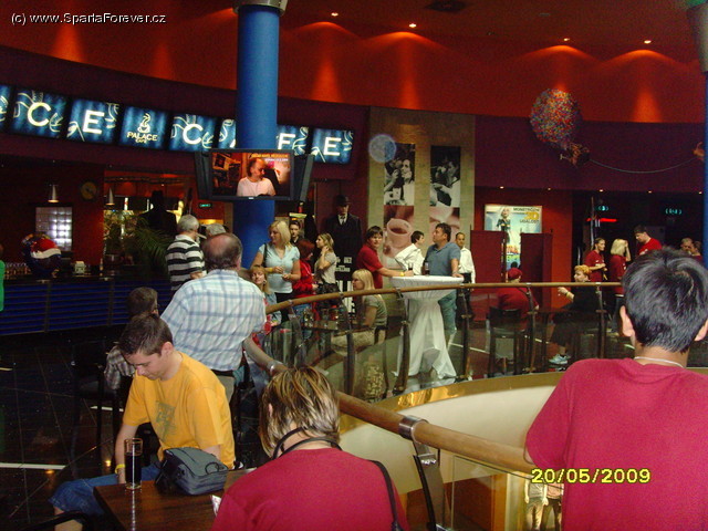 20. 05. 09 od 19 hodin proběhlo v Palace Cinemas na Smíchově pro majitele zlatých permanentek sezení s hráči, které bylo spojeno se sledováním finále Poháru UEFA. Sezení se účastnil Martin Hašek, Roman Hubník, Martin Zeman a Kamil Vacek + mluvčí jehož jméno jsem bohužel nezaznamenal (Ondra Kasík - pozn. red.). Po malém občerstvení jsme byli cca v 19:30 h. vpuštěni do kinosálu č. 1. Okolo 20 h. pak přišli výše jmenovaní a začala diskuze. Nevím jestli dám dohromady všechny dotazy, ale pokusím se tu toho sepsat co nejvíc. První dotaz byl na mluvčího ohledně modernizace stadionu. Z toho co se momentálně chystá a mělo by být hotové již v prvním kole nového ročníku, budou dvě nově instalované obrazovky, na které, tj. min. na jednu z nich by měl, ze svého místa vidět každý.
