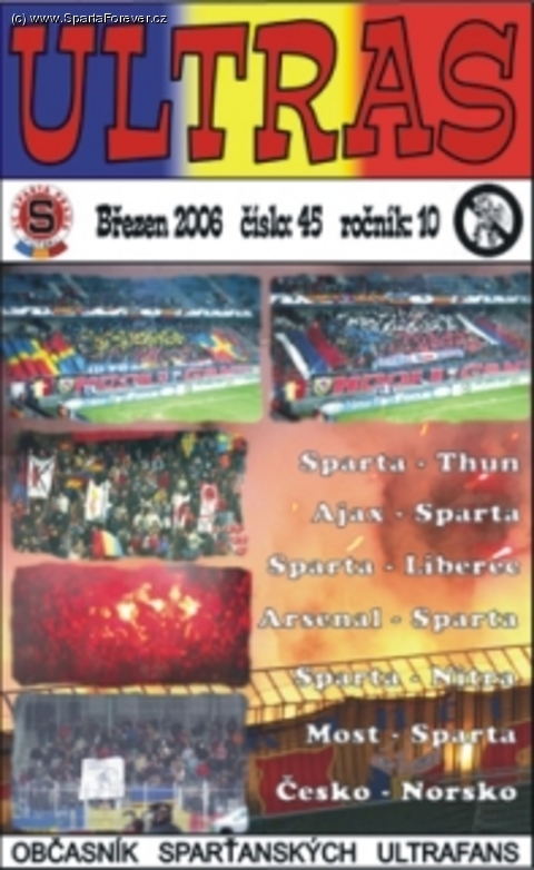 Líbí se Vám choreografie na stadiónu a jste rozumně uvažující sparťan, musí Vám být tedy jasné, že každá "sranda" něco stojí. Ne zrovna lehké je financovat náročné choreografie z papírů, fólií, ohňů, dýmů, látek atd. Pokud jste tedy na první otázku odpověděli ano, pak je zde kromě Občasníku Sparta Forever, CD Sparta Forever a samolepek Sparta Forever, další možnost jak na choreo přispět. Tou je zakoupení už 45. čísla fanouškovského zinu ULTRAS, jehož představení naleznete uvnitř článku.