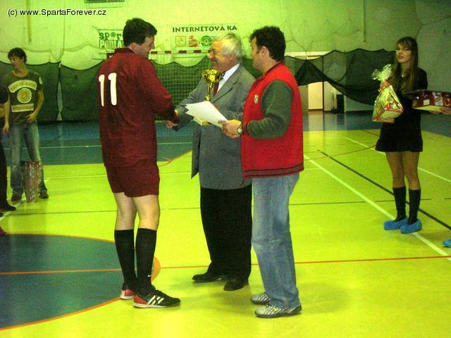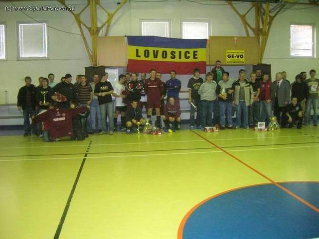 Již posedmé v řadě uspořádal Fanclub Sparta Lovosice halový fotbalový turnaj mužů a prokázal tak opět, že je jedním z nejaktivnějších fanclubů Sparty. Do útulné haly v Lovosicích pozval na sobotní ráno své 3 "bratry", FCS Poděvousy, FCS Louny a FCS Poděbrady a již potřetí za sebou byl přizván i tým Sparta Forever. Ten měl na co navazovat, protože se mu v minulých dvou ročnících podařilo vždy zvítězit a radovat se tak z největšího poháru a krásných sparťanských a labužnických cen. Začalo se dle časového plánu v 8:15 hod, přítomný byl skromný počet fanoušků a rozhodčí oblečený v profesionálním dresu:) Že jeho výkony nebyly až tak profesionální je druhá věc, rozhodně však alespoň jeho oblečení zvedlo o fousek prestiž tohoto turnaje. Více pochopitelně úroveň turnaje vzrostla, když zúčastnění hráči zasedli do nedalekého restauračního zařízení a mohli si pochutnat na sportovním pamlsku v podobě párečků a poté jako hlavní chod po turnaji okusit místní vynikající gulášek.