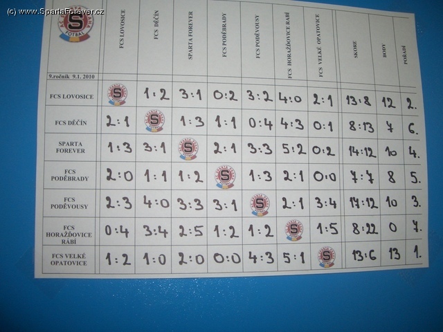 Na tento klasický turnaj v halovém fotbálku se pochopitelně těšili všichni tradiční účastníci a přidalo se i několik nováčků. Počet týmů se tak na turnaji šampionů (nebo šampónů?:) v Lovosicich vyšplhal na sedm. Klání organizované již po 9. v řadě zastínil ve sparťanské obci i Fortunou pořádaný turnaj šampionů v Praze a tak zájem sparťanů byl v Lovosicích o poznání větší než v O2 Aréně. Po dvou prvních místech, jednom třetím a jednom druhém místě jsme byli zvědaví, jak se v Lovosice Aréna představí tým Sparta Forever. Ještě před začátkem turnaje nastaly komplikace v podobě sněhového počasí, které nedovolilo všem účastníkům dorazit včas. Tým SF byl na turnaji samozřejmě na vteřinu přesně:)