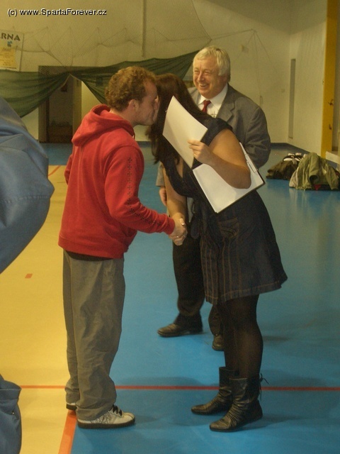 Po skončení turnaje přišlo na řadu slavnostní vyhlášení, které bylo doprovázeno velkým zájmem fotografů. Ne že by si nemohli vyfotit hráče při hře, ale na place se začala vyskytovat MARDŽA - MISS SPARTA FOREVER 2009. Za účasti předsedy fanclubu Neratovice, pana Obdržala, pak tato krásna předala všechny ceny pro hráče, kteří k ní vždy velmi dobrovolně přispěchali...v týmu SF se pro ceny za 4. místo museli vydat hned 3 hráči. Slavnostní okamžik byl občas zpestřen skandování místním hooliganem s šálou Chelsea Headhunters:)) Viz foto. V případě, že se zúčastní tento fanoušek příštího missáka SF, bude mít naději na čelní umístění. Jo a kdo vlastně turnaj v Lovosicích vyhrál...největší pohár si odnesli do Velkých Opatovic, následování místním FCS a dalším tradičním účastníkem, FCS Poděvousy.