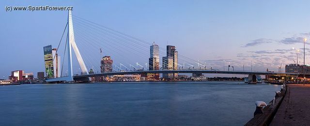 Ano, Sparta Rotterdam je sice trochu divná, tedy bíločervená, ale s krásným názvem a velmi zajímavým stadionem s názvem Het Kasteel (viz. foto odpovídající názvu). Doporučujeme tedy navštívit až nebudete mít v Rotterdamu přes den co dělat a rovnou bychom si mohli střihnout hromadný sraz u tohoto stadionu ve 14:00! Společná fotka před takovým sparťanským stadionem? K nezaplacení! I Feyenoord má zvrácené barvy bíločervené a hraje své zápasy na stadionu De Kuip v jižní části města s kapacitou 51.577 diváků, která bývá nezřídka zcela naplněna. Nejinak by tomu mělo být i v duelu se Spartičkou a proto pokud ještě váháte zda jet, neváhejte a pojeďte, zážitek to určitě bude skvělý. Největší aktuální personou v klubu je určitě trenér a sice bývalý slavný obránce Ronald Koeman, který kromě všech 3 slavných holandských klubů hrál i za věhlasnou Barcelonu, kdy se jako hráč v jejím dresu střetl i se Spartou. Co se týká samotného města Rotterdam, jedná se o největší evropský přístav s přibližně 620.000 obyvateli, který je roztažen kolem vody. Žádné historické skvosty architektury v něm nenajdete, ale nějakou moderní futuristickou architekturu ano. Turistickou atrakcí je věž Euromast, ze které je vidět na velkou část města.