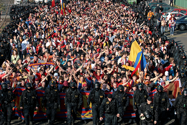 Jak se stalo příjemnou novodobou tradicí v minulých letech navazující na dávno polozapomenuté doby, na derby jdou VŠICHNI SPARŤANI SPOLEČNĚ!!! Zápas s odvěkým rivalem tentokrát vyšel na velice pěkný čas, a to sobotu 29. září od 20:00 hodin. Proto nás musí jít hodně a společně ukážeme sešívkám kdo vládne Praze. Víkendová výluka metra trasy A neumožňuje přesun od Letenského stadionu přes Hradčanskou. Že by další antifanouškovské opatření?:)) Pochod bude tedy tentokrát na trase Náměstí Míru - Cirkus Eden. Sraz bude na Náměstí Míru v 17:15 hod. a v 18:15 hod. se vyrazí směr šapitó. Automatická povinnost všech přítomných je přijít v rudém oblečení. Samozřejmostí jsou vlajky, šály, čepičky a všechny další propriety, které z obyčejného smrtelníka dělají neobyčejného fanouška SPARTY! Přijďte všichni a včas, ať je nás Sparťanů co nejvíce, nebuďte líní!