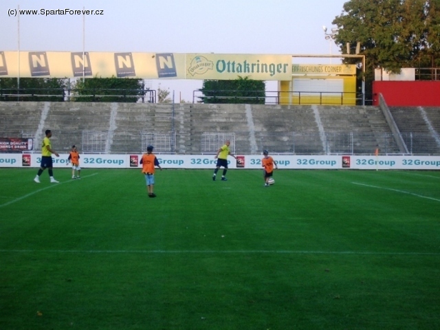 Na výjezd do Vídně se těšil nejeden z nás! Ráno jsme nasedali do auta s dobrou náladou a byli zvědaví na zlepšenou hru Sparty, o které nás denně informují média. Vídeň nás přivítala sluníčkem, ke stadionu mířily davy Turků žijících ve Vídni, jen pár aut s českou SPZ parkovalo vedle tréninkového hřiště slavné Admiry. Bylo to takové první zklamání, protože polohou patří Vídeň k nejdostupnějším výjezdům a tak jsem čekala, nejen já, větší návštěvu Sparťanů, zvlášť fandů z Moravy, kteří to do Vídně mají blíž než-li do Prahy. Bohužel se ukázalo, že ani dobré počasí a atraktivní soupeř nenalákal více než zhruba 60-70 sparťanských fans. Na druhou stranu jsou prázdniny, spousta má jiné starosti, některé i odradilo vstupné ve výši 15 euro, což je za přátelák poměrně dost.