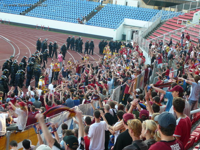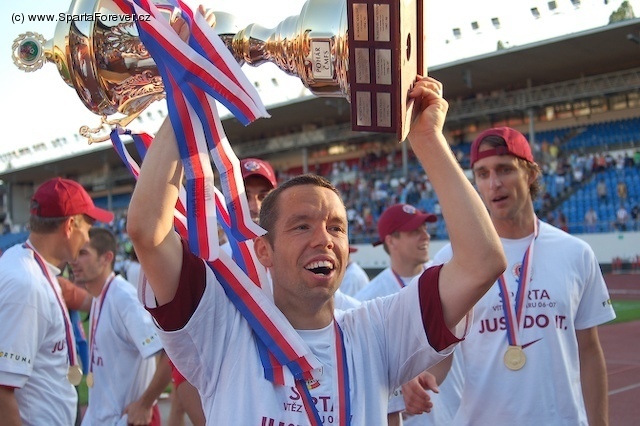Být v lihovém opojení je krásná věc, ale ta rána jsou krušná. Vím o čem mluvím. Tak jako asi všichni Sparťani jsme včera s kamarádem a kolegou ve zbrani vypili litry piva na počest našich zlatých hochů. Začal se naplňovat totiž náš velký sen o prvním historickém double v podmínkách samostatné České republiky. Vyhráli jsme domácí pohár ČMFS a zároveň tak obhájili (opět jako první v ČR) tuto poněkud podceňovanou trofej. První krok jsme tedy udělali rázně, od začátku zápasu nebylo pochyb, kdo bude vítězem. Snad malinkou vadou na kráse bylo nejenom absolutně tragické občerstvení (chce se říct – chudáci slávisti – ale to mi nejde přes pysky ;-) ), ale také skutečně pekelná výheň. Ano, člověk si alespoň trochu opálil plzeňskou dvanáctkou pečlivě modelované tělo, ale čeho je moc, toho je příliš. Do sauny můžu se svým kolegou zajít například do hotelu Duo a ještě tam koutkem oka náhodou zahlédnu nějaké to dívčí ňadérko. Takhle jsme se upekli stejně a koutkem oka zahlédli leda tak pěstěné pupky ostatních Sparťanů.
