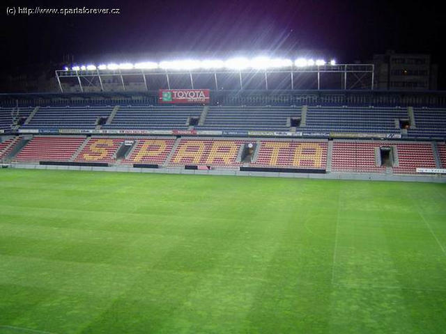 Stadion Sparty je stejně jako samotný klub vlajkovou lodí českého fotbalu. Poslední úpravou, která v nedávné době v našem chrámu proběhla byla výměna osvětlení. To staré fungovalo neuvěřitelných 35 let. Nové má nyní intenzitu 1600 luxů a jeho ostrá zápasová premiéra proběhla 30.7. 2005 při posledním utkání letní přípravy proti Norimberku. A jak se mnozí z nás mohli přesvědčit, rozhodně je to úspěšná změna. Celá rekonstrukce osvětlení hrací plochy i hlediště a přidání světel na střechy tribun za brankami probíhala bezmála dva měsíce a byla ukončena zkušebním provozem. Zde si nyní můžete z této zkoušky prohlédnout exkluzivní fotografie. Tímto také děkujeme za jejich zaslání. Všichni se tak můžeme pokochat nádherným pohledem na náš potemnělý a fotbalově romanticky osvětlený svatostánek či si prohlédnout zajímavé záběry do prázdného hlediště. Nutno podotknout, že tato rekonstrukce náš klub dle oficiálních vyjádření stála bezmála 10 miliónů korun. Nyní si jen přejme, aby toto nové osvětlení zažilo aspoň tolik úspěchů borců v rudých trikách jako to předešlé. SPARTA FOREVER!